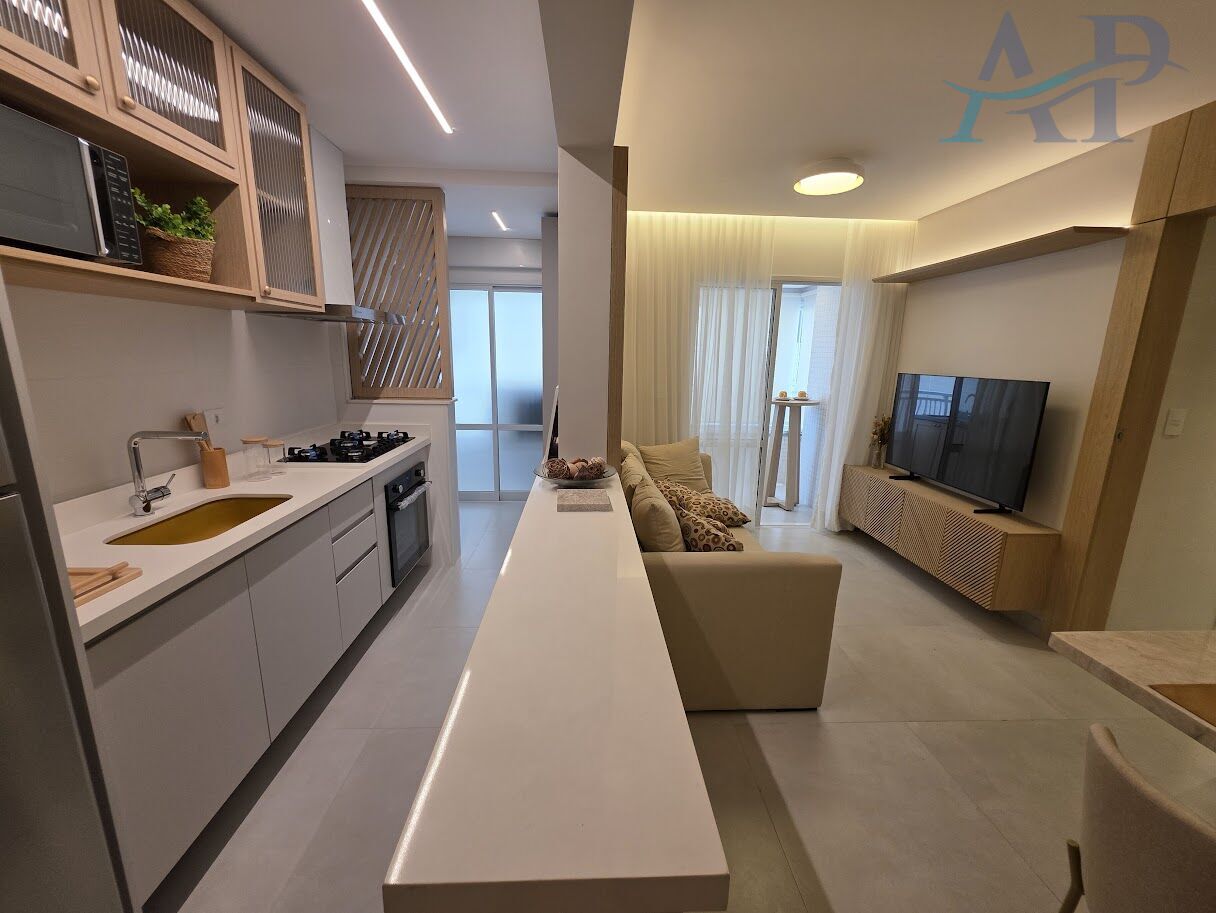 Com 2 dormitórios, sendo um suíte, cozinha ampla e integrada com a sala, área de serviço, banheiro social, ampla varanda Gourmet e uma vaga de garagem.
