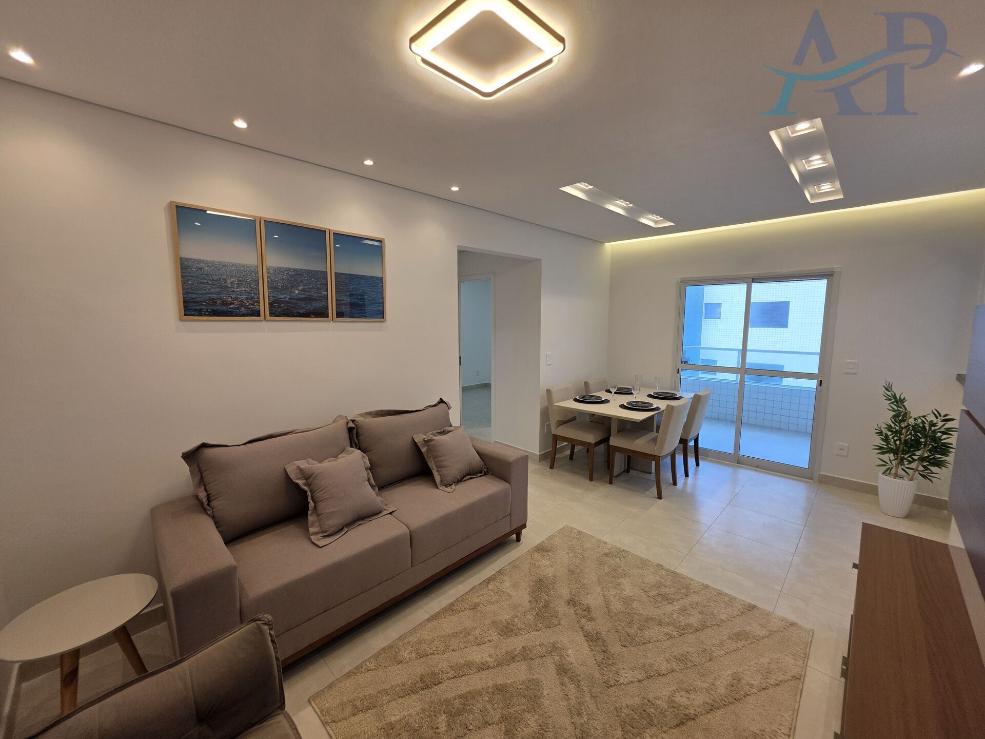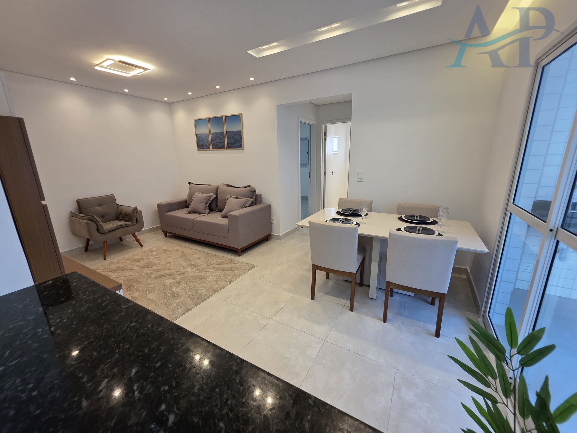 Semimobiliado, teto rebaixado no gesso, iluminação moderna e já com fechamento de sacada.