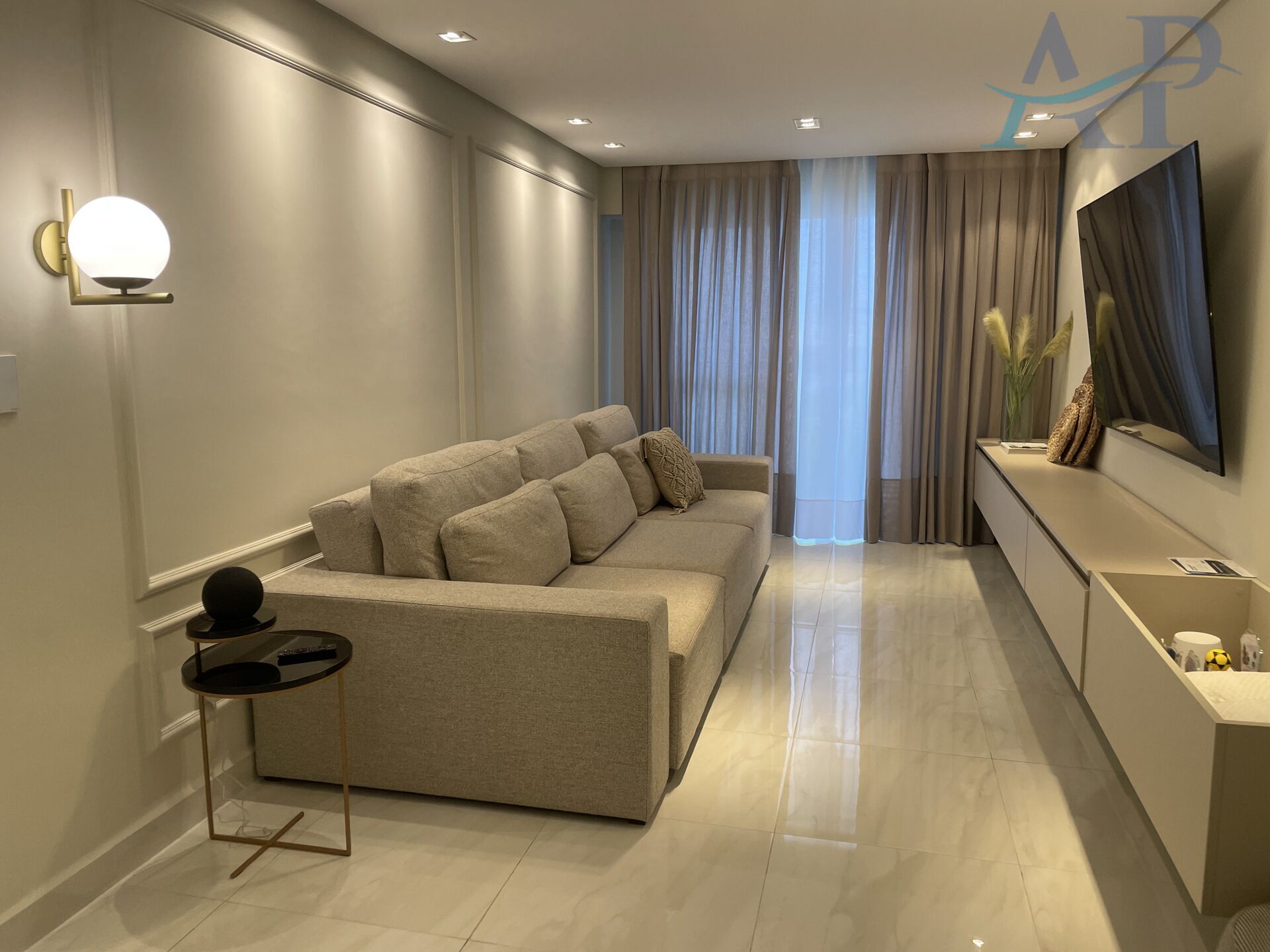Excelente imóvel, andar alto, bem arejado, fica aproximadamente 270 metros do mar, com muita luz natural e alto padrão em acabamento. O apartamento já conta com fechamento de vidro na sacada, varanda Gourmet enorme com vista livre e Mar, sol da manhã, finamente Mobiliado e Decorado.